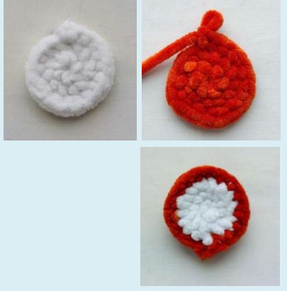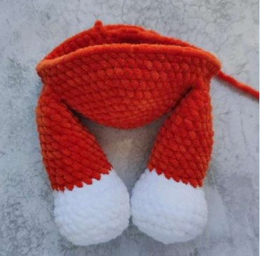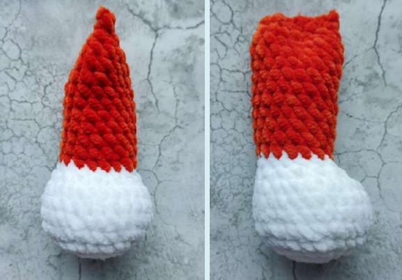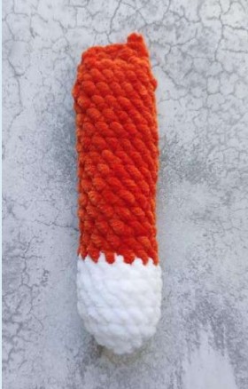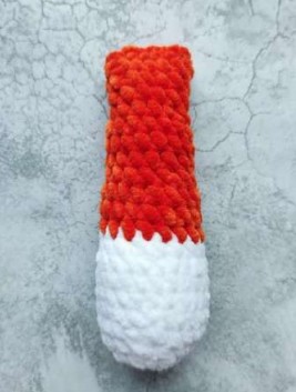 Do not cut the thread, put the red and white parts together, tie in a circle on both edges 18 sc. Fasten the thread, cut.