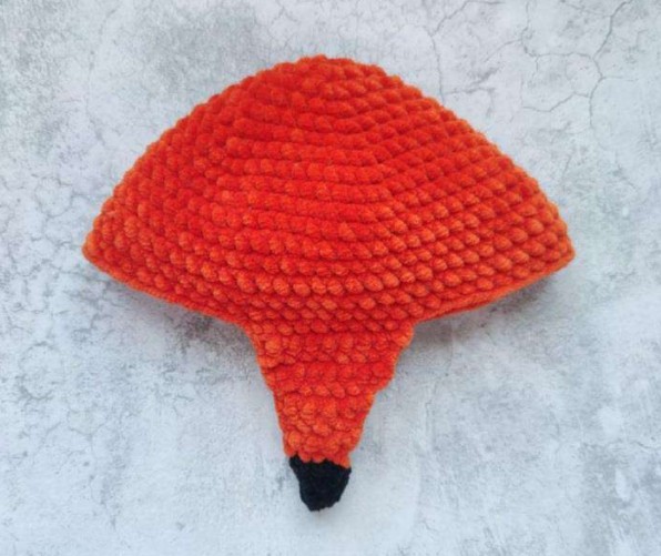 Embroider the ears of the ıncish in rows 4-11 of the red part of the head of the “hat”